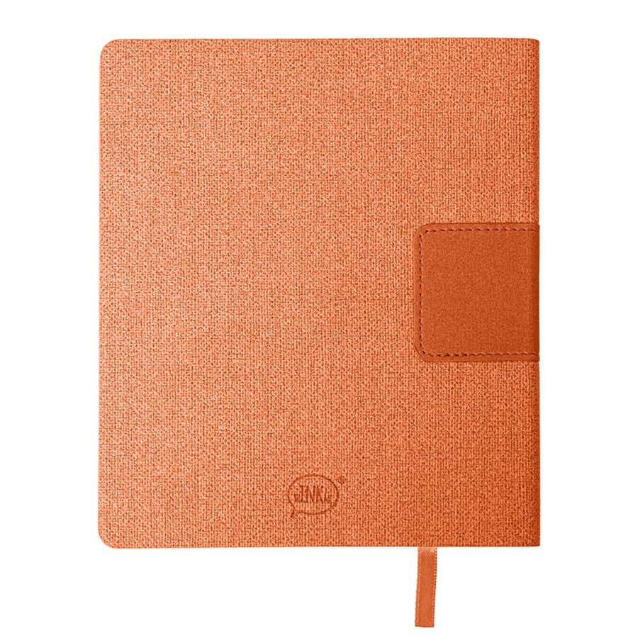 TWEEDI – бизнес-блокнот в мягкой обложке Размер 150*180 мм Обложка из PU Nubbi c декоративным элементом из PU Suede Цвет обложки близок к pantone 166CВнутренний блок 256 страниц в линейкуИдеально скругленные углы блокаПерфорированные 8 последних листов Кремовая eco-friendly эвкалиптовая FSC бумага 70 г м2Ляссе в тон обложкиИндивидуальная упаковка: фирменный thINKme sleeve-box -