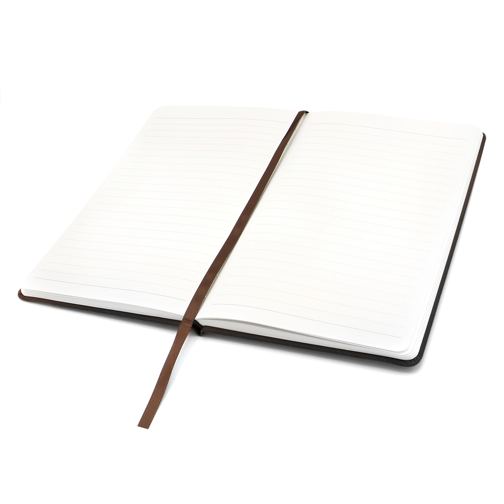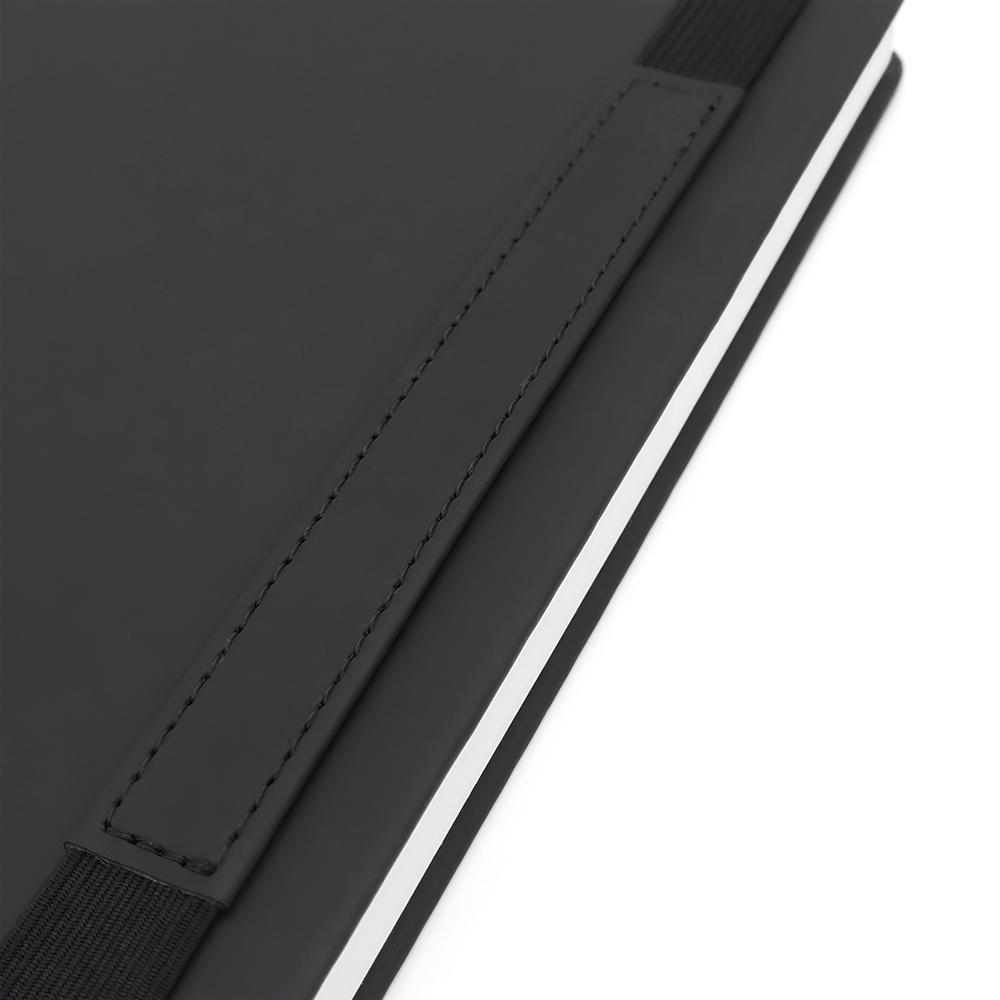 Блокнот формата А5 в твёрдой обложке из искусственной кожи. Материал обложки — термополиуретан, текстура — гладкая. Из особенностей: широкая эластичная застёжка со вставкой из кожзама. На неё можно нанести логотип либо слоган вашей компании. Размеры: 214*138*17 мм, 192 страницы / 96 листов, страницы разлинееные, бумага плотностью 80 г/м2. Размер вставки из кожзама 134*17 мм; ширина застёжки — 15 мм.- Виды нанесений: УФ-печать А2, Гравировка А2, Тиснение, УФ-Лак, УФ-Цвет+Лак, Тиснение фольгой