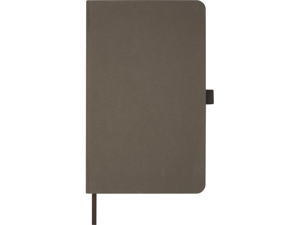 Легкий блокнот в твердой обложке для повседневных заметок с обложкой из материалов из ответственных источников. Коричневая обложка содержит остатки кофе, зеленая — остатки оливок, а белая — кукурузы. Имеет 80 листов (70 г/м²) из переработанной белой линованной бумаги.
