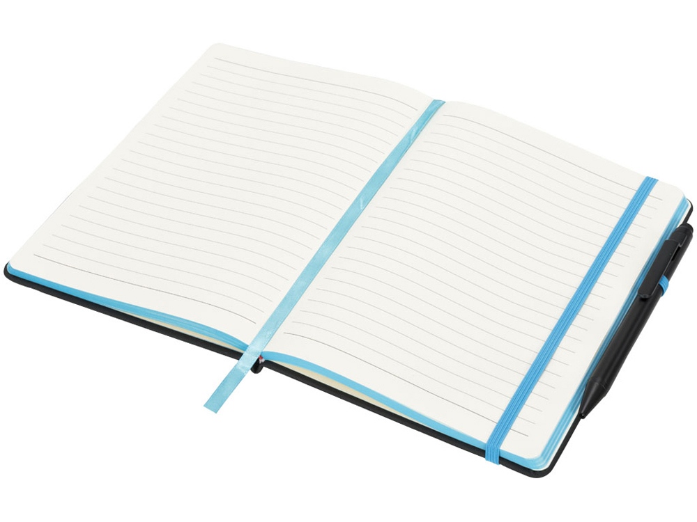 Блокнот Noir Edge среднего размера. Современный и стильный черный блокнот с мягкой на ощупь обложкой. Цветной край и цветные маркеры страниц, застежка-держатель для ручки. Предлагается с черной шариковой ручкой-стилусом. Блокнот содержит 96 листов линованной бумаги (70 г/м²) кремового цвета. ПУ. -
