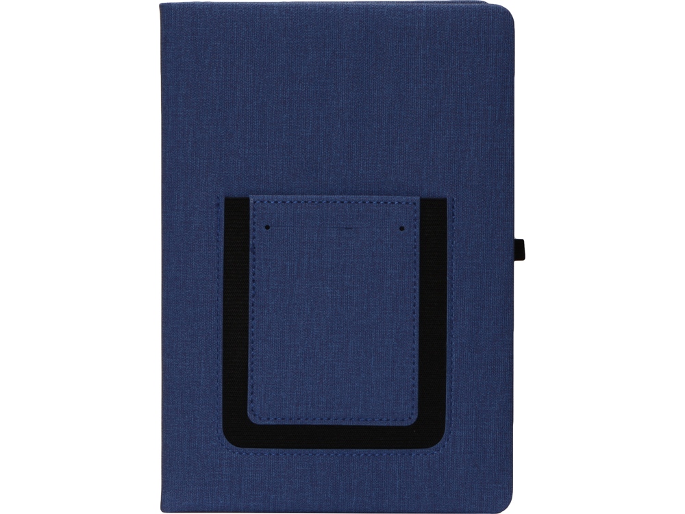Стильный современный блокнот формата А5. На передней обложке расположен удобный карман для мобильного телефона, бумаг и визиток. Специальная подкладка обложки делает блокнот мягким на ощупь. Покрытие обложки имитирует текстуру текстиля, не скользит и отлично подходит для нанесения логотипа. -