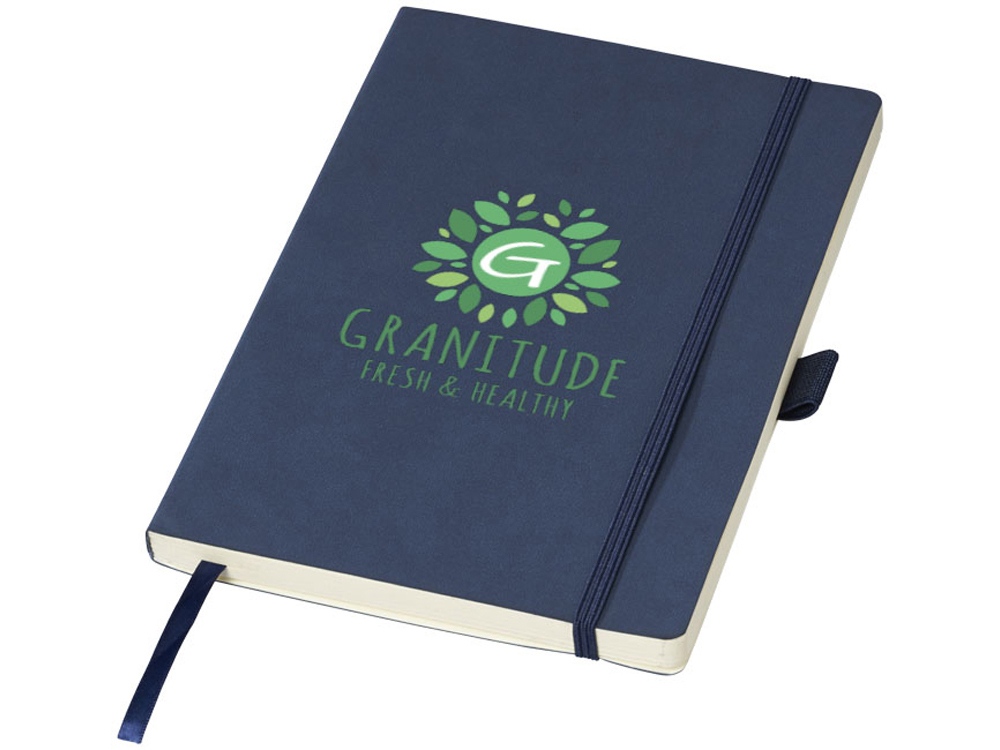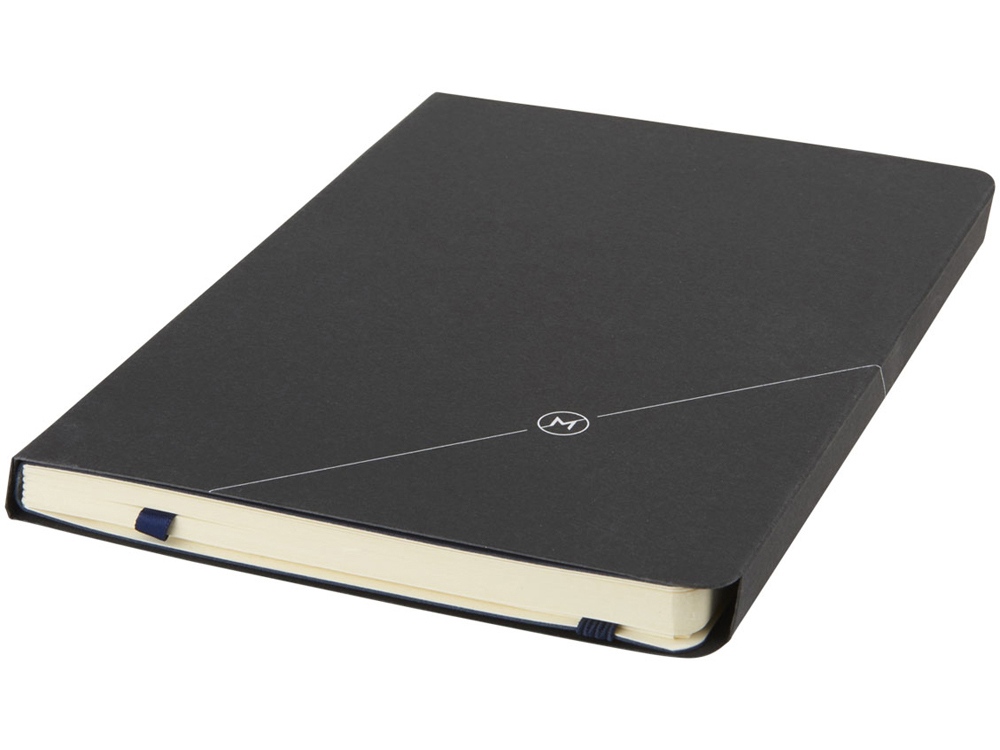 Блокнот Revello. Мягкий на ощупь, гибкий блокнот (размер А5 для ориентации) со встроенной эластичной застежкой, закладкой, петелькой для ручки и кармашка для документов на внутреннем форзаце сзади. 80 листов кремовой линованной бумаги (80г/м2). Упакован в черную коробку-рукав. Кожа ПУ. -