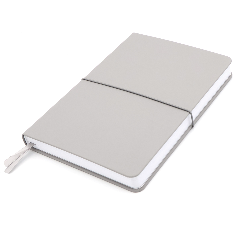 Блокнот А5-формата жёсткой обложке со специальным гладким покрытием. Материал обложки — полиуретан. Карман в нахзаце, форзац, двойное ляссе, эластичная застёжка — всё комплиментарно цвету обложки. Размеры: 150*214*24 мм, 384 разлинеенные страницы / 192 листа, бумага плотностью 70г/м2. В кармане можно переносить визитки, купоны и т.д.- Виды нанесений: УФ-печать А2, Гравировка А2, Тиснение, Тиснение фольгой, УФ-Лак, УФ-Цвет+Лак
