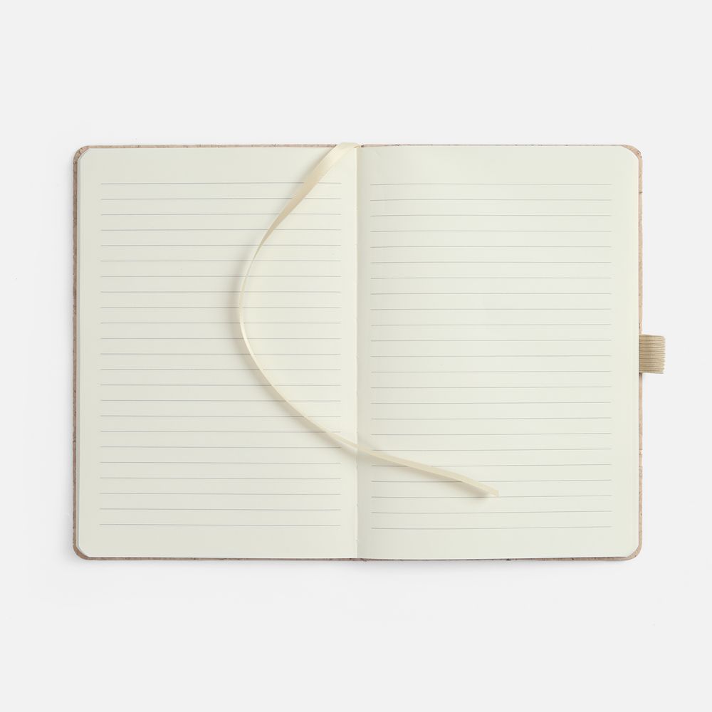 Cork County. Удобство в каждом штрихе!Блокнот с твердой обложкой из натуральной окрашенной пробки, дополнен петлей-резинкой для ручки, ляссе и резинкой в цвет обложки.