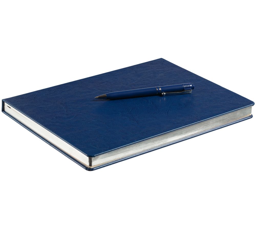 Статусный ежедневник с твердой обложкой и металлизированным обрезом, выполнен из материала Nebraska, синий НН.