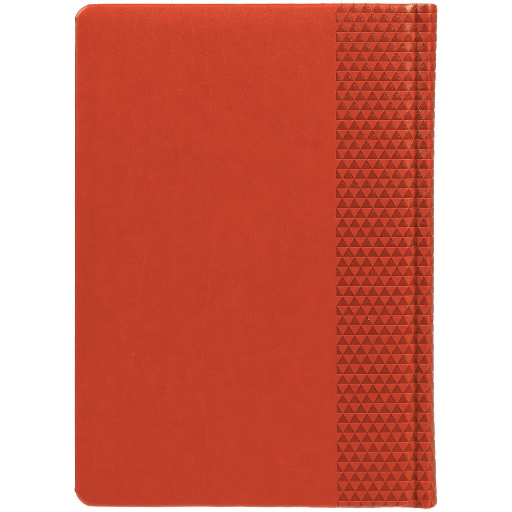 Ежедневник с твердой обложкой, выполнен из материала Waltz, оранжевый ОО, дополнен ляссе в цвет материала.