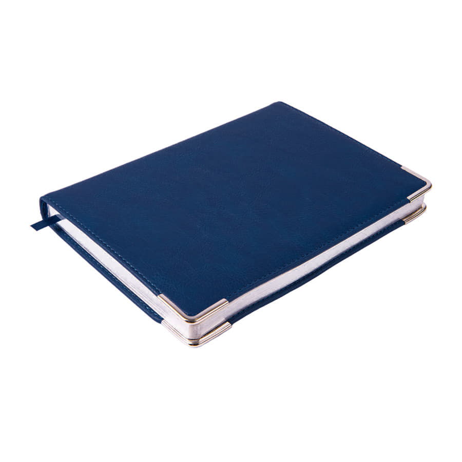 Цвет обложки, близкий к пантону 296С Размер 145*205 мм Переплет твердый, прошивка по периметру, серебристые уголки Обложка термоактивный PU Блок недатированный, в линейку Скругленные углы, одноцветная печать Бумага кремовая, плотность 70 г м2 Форзац нахзац черные 272 страницы Серебристый обрез Каптал и ляссе в цвет обложки Упаковка крафтовый сливбоксВ данный момент происходит смена справочной части блока. Внешний вид изделия остается без изменений. -