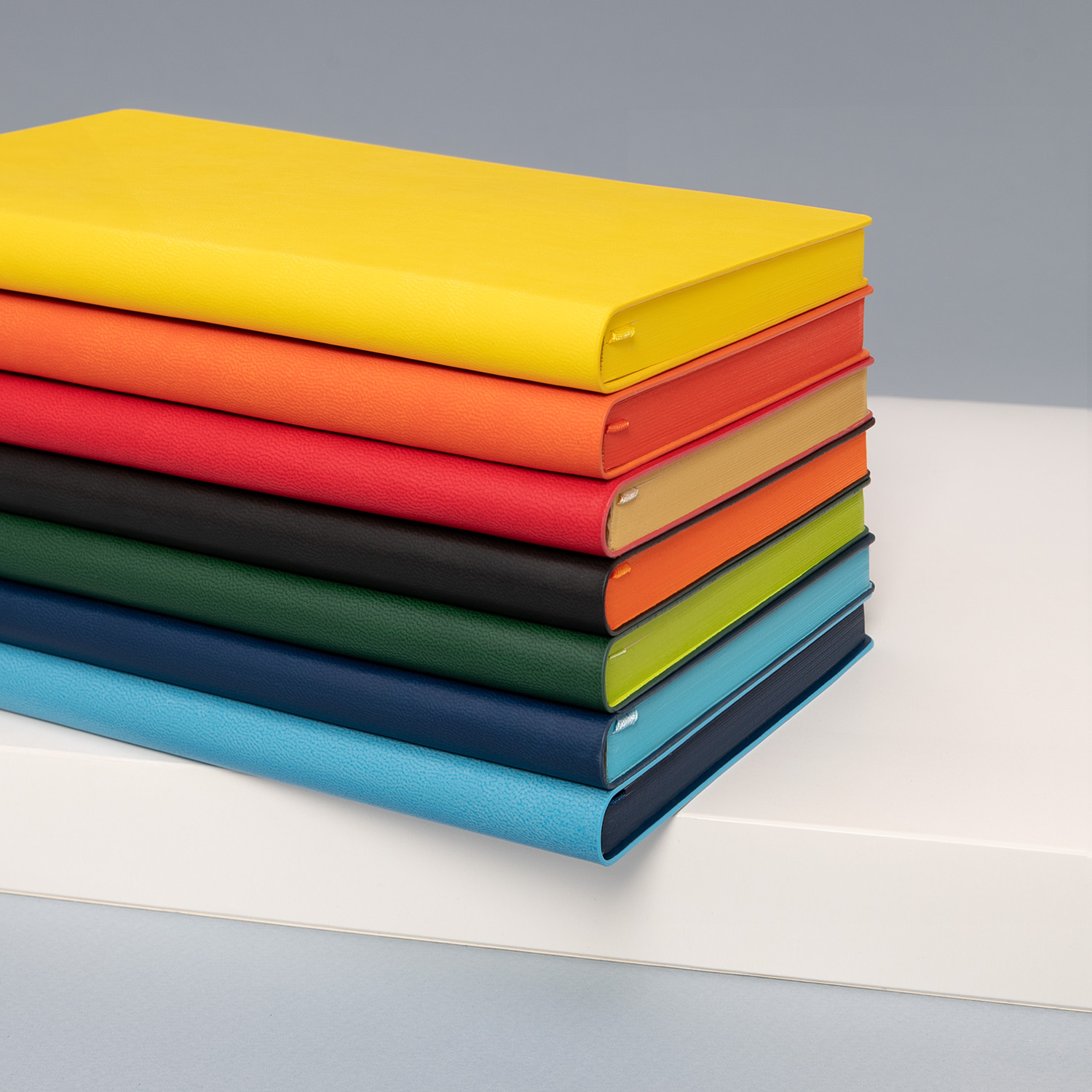 Яркий и выразительный дизайн ежедневника Latte New не может остаться незамеченным. Минималистичный, но завершенный внешний вид аксессуара обусловлен удачным сочетанием оттенков синего. Гибкая обложка с закругленными уголками выполнена из приятного на ощупь, слегка прорезиненного материала. Она не образует заломов, не расслаивается и устойчива к повреждениям. Покрытие обложки имеет едва заметный блеск и мелкозернистый рисунок, имитирующий искусственную кожу. Яркий внешний вид создается контрастными элементами: яркий и свежий голубой цвет обложки сочетается с глубоким синим цветом форзаца и среза. Форзац, нахзац и срез матовые. Кремовые скругленные страницы выполнены из шелковистого офсета. Они гармонично оттеняют свежесть основных цветов, уравновешивая цветовую композицию. Гладкое атласное синее ляссе с легким отливом выполнено в тон форзаца.