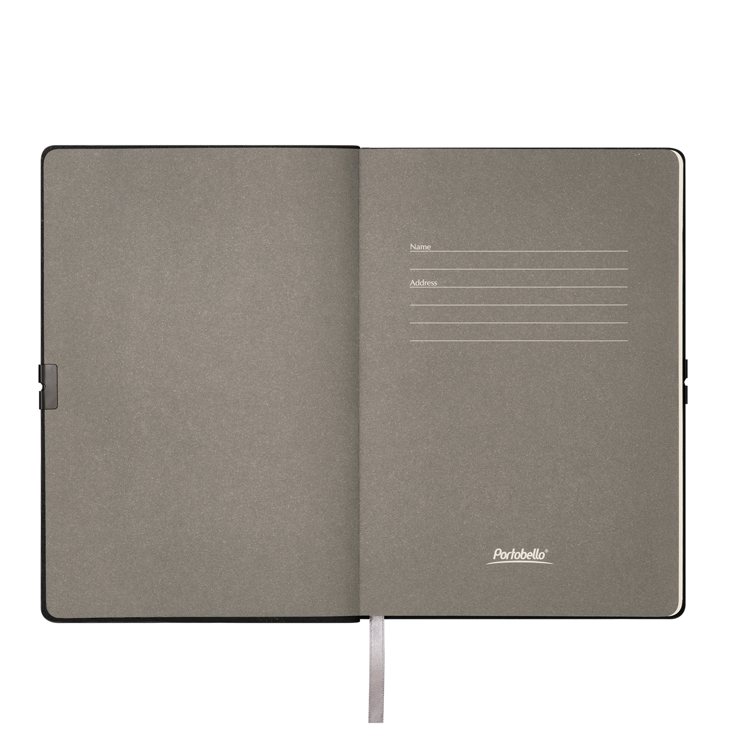 Горизонтальная резинка, фиксирующая обложку, дополнена металлическими элементами, которые не только защищают обложку от повреждений, но и служат стильным акцентом. Матовый срез в тон обложки и светло-кремовые страницы из гладкого, слегка шелковистого офсета подчеркивают изысканность дизайна. Атласное ляссе гармонично завершает образ этого элегантного ежедневника.