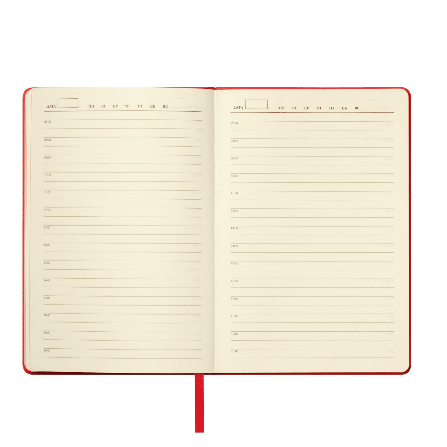 Недатированный ежедневник Molto в гибкой обложке из высококачественной искусственной кожи сочетает в себе практичность и стильный дизайн. Текстурированная матовая поверхность с деликатным рельефом имитирует натуральную кожу, а скругленные углы обложки и блока добавляют изящества.