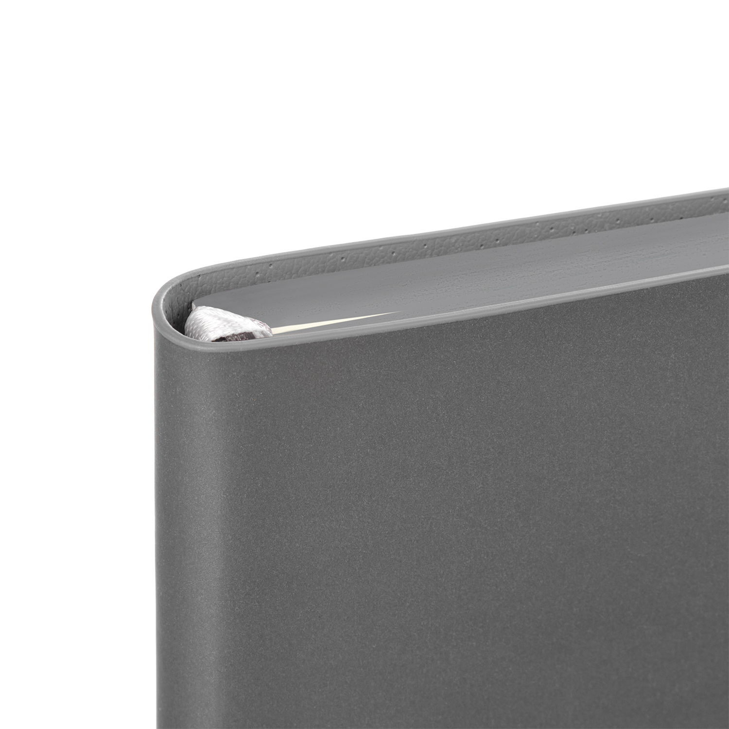 Форзац и нахзац, выполненные в тон обложки, создают гармоничный и целостный образ. Гладкие, шелковистые страницы светло-кремового оттенка со скругленными уголками дарят ощущение тепла и уюта, приглашая вас окунуться в мир вдохновения. Контрастный матовый серый срез добавляет ежедневнику нотку современности.