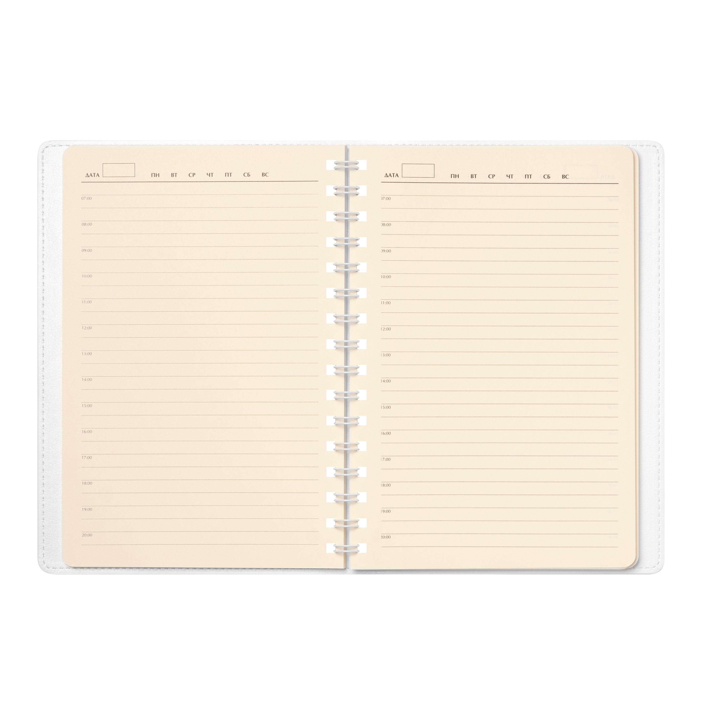 Надежная полускрытая пружина в цвет обложки обеспечивает удобство использования и долговечность. Этот ежедневник не только поможет вам эффективно планировать дела, но и станет стильным аксессуаром, подчеркивающим ваш индивидуальный стиль.