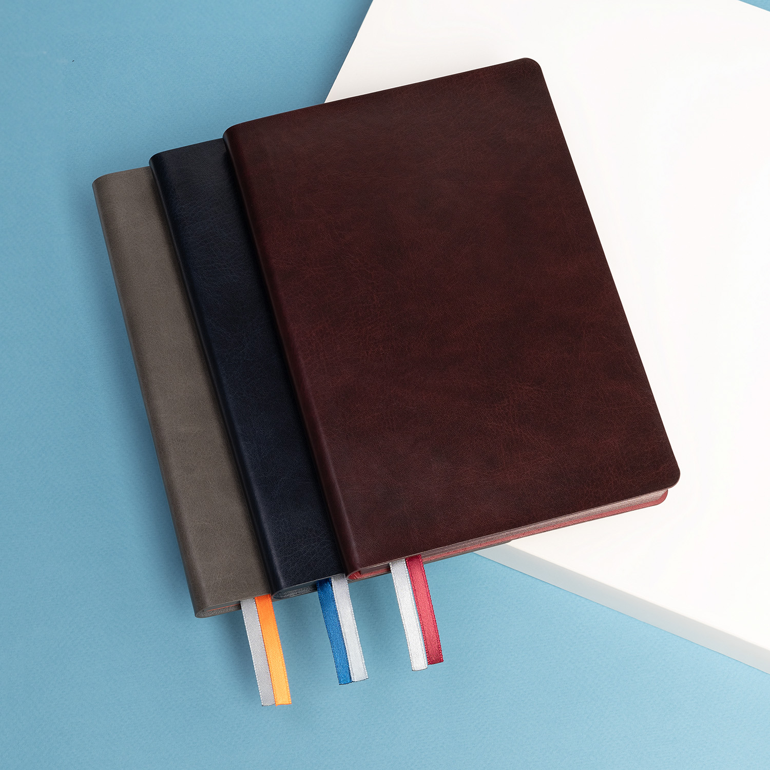 Яркий и одновременно лаконичный недатированный ежедневник Voyage воплощает современный дизайн и изысканный стиль. Гибкая обложка из искусственной кожи с полуглянцевым покрытием и скругленными уголками привлекает внимание своей необычной фактурой – едва заметной сеткой мелких морщинок и прожилок, напоминающих натуральную кожу. Спокойный, естественный цвет с неоднородным мраморным рисунком и плавными переходами от темного к светлому оттенку добавляет обложке глубину и изысканность.