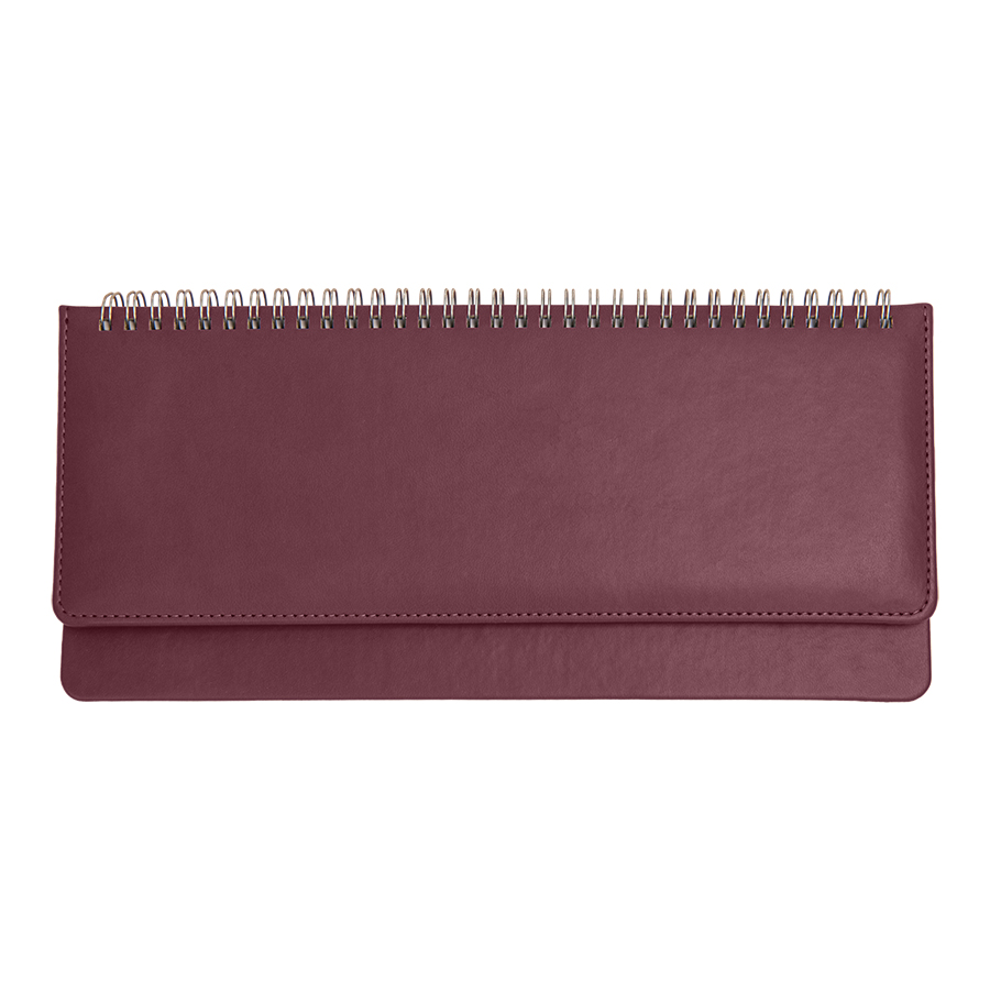 Цвет обложки, близкий к пантону 491C Размер 140*300 мм Переплет твердый, на металлической спирали, прошивка по периметру верхней обложки Обложка PU Velvet Блок недатированный, в линейку, прямые углы Бумага белая, плотность 70 г м2 Форзац нахзац серые 128 страниц Упаковка крафтовый сливбоксВ данный момент происходит смена справочной части блока. Внешний вид изделия остается без изменений. -