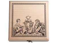 Подарочный набор с чаем и эфирными маслами История пара и самовара в деревянной шкатулке