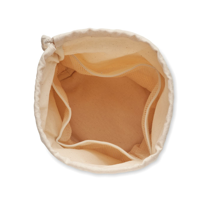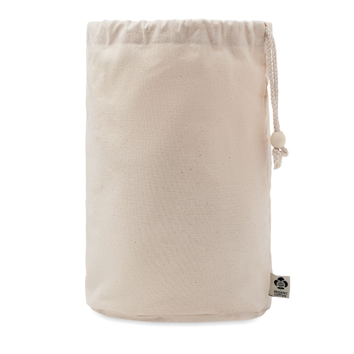 Сумка-мешок для аксессуаров среднего размера из органического хлопка. 220 гр/м². Имеет внутренние сетчатые отделения и деревянную застежку. -
