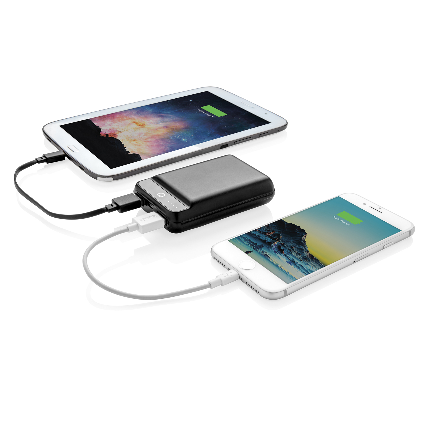 Компактный внешний аккумулятор емкостью 10 000 мАч изготовлен из прочного ABS-пластика и способен, благодаря своему уникальному дизайну, с легкостью уместиться в кармане. Энергии полностью заряженного литий-полимерного аккумулятора высокой плотности хватит, чтобы зарядить ваш смартфон до четырех раз. Удобные световые индикаторы отображают уровень заряда, напоминая о необходимости подзарядить устройство. Напряжение как на входе, так и на выходе составляет 5В/2,1A.
