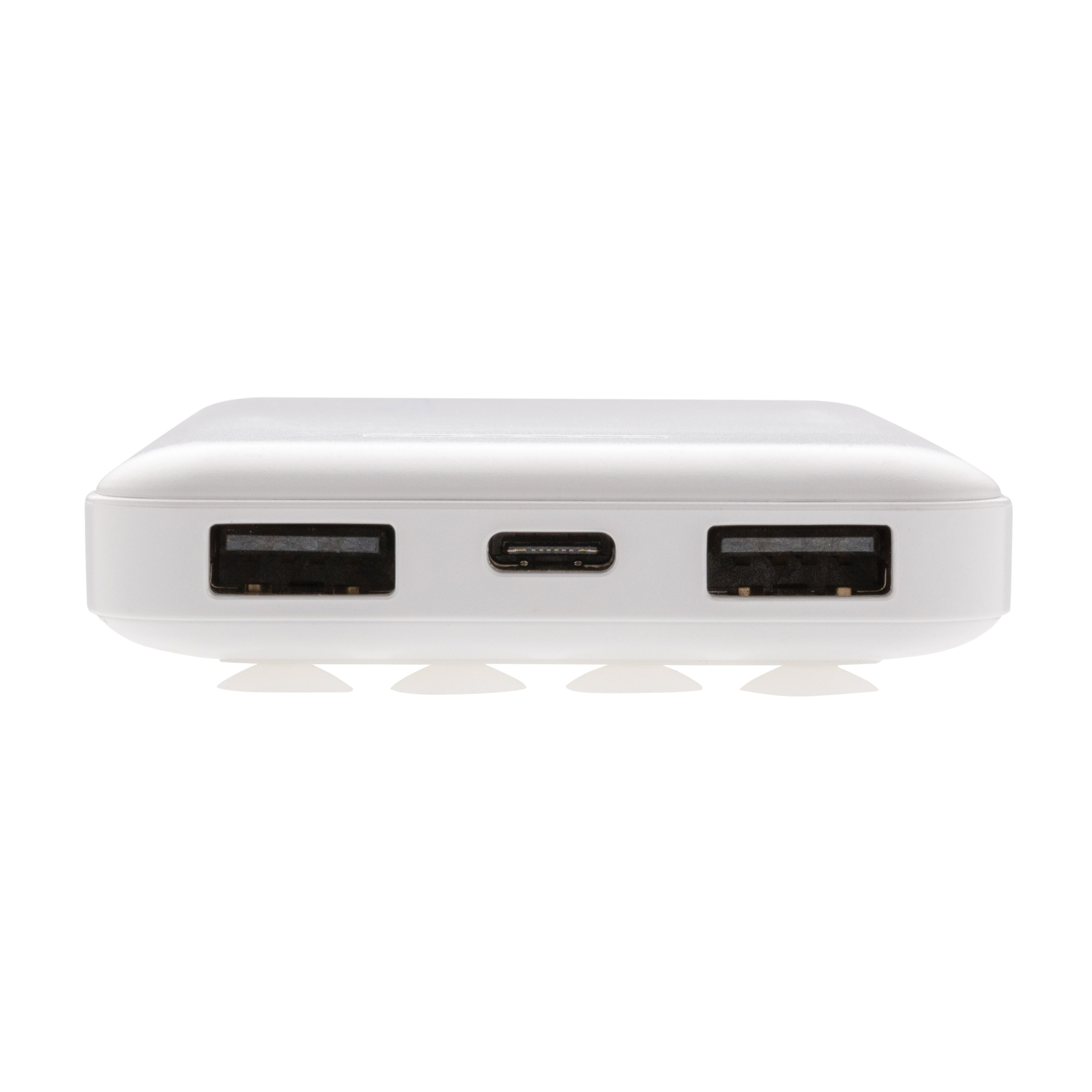 Сверхкомпактный внешний аккумулятор на 5000 мАч с функцией беспроводной зарядки 5 Вт сделан из легкого пластика ABS, поэтому его очень удобно брать с собой. Способен подзарядить ваш смартфон до 3 раз. Устройство оснащено долговечным литий-полимерным аккумулятором высокой плотности класса А на 5000 мАч. Два USB-порта. Благодаря индикаторам питания вы всегда будете знать, когда нужно подзарядить аккумулятор. Вход 5 В / 2 А. Выход USB 1: 5 В / 2 А. Выход USB 2: 5 В / 1 А. Беспроводной выход: 5 В / 1 А, 5 Вт.