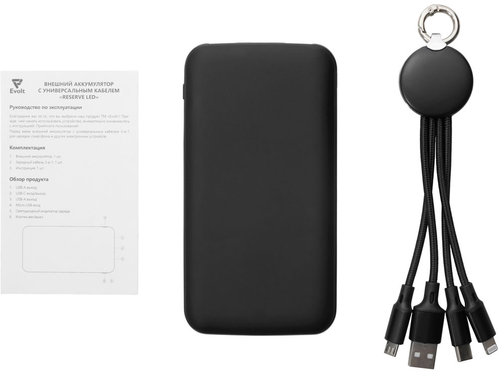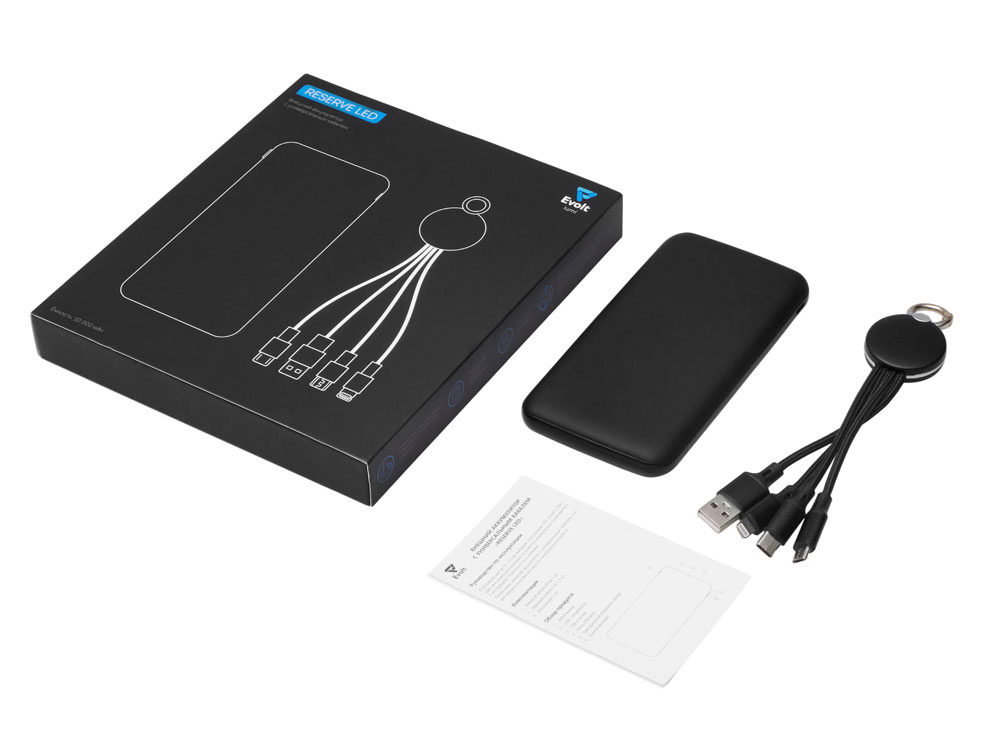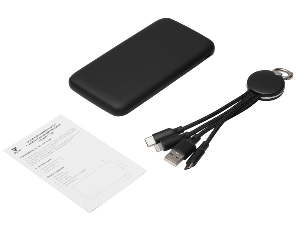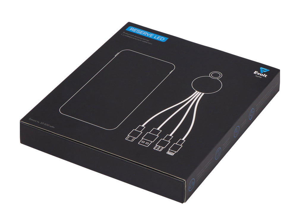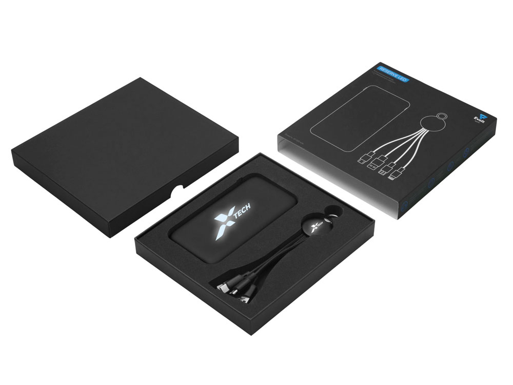 Набор из внешнего аккумулятора и универсального кабеля с подсветкой лого Reserve LED, 10000mAh