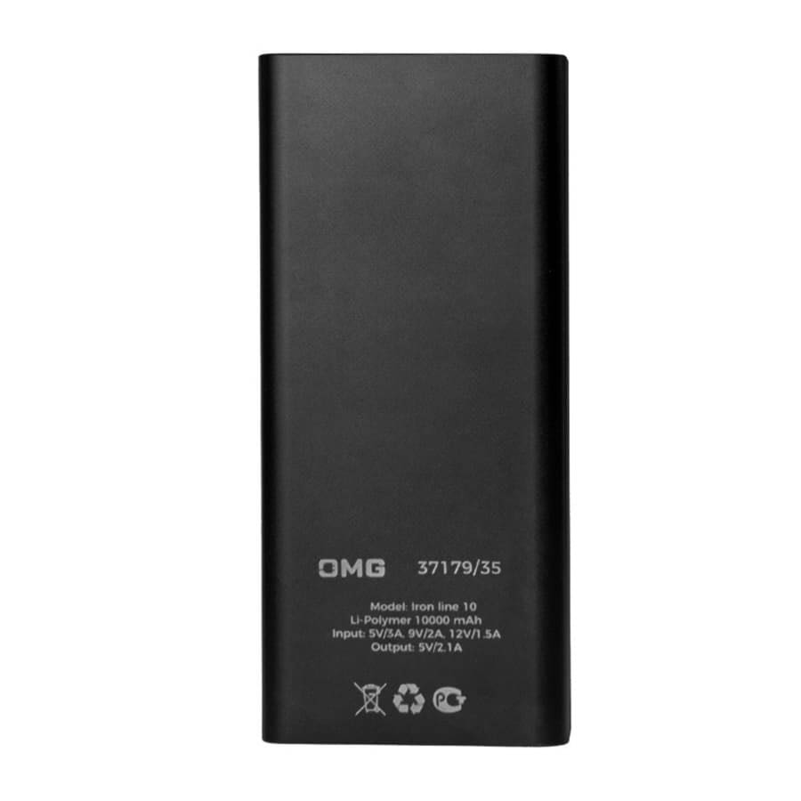 Универсальный аккумулятор Iron line 10 (10000 мАч), металл, черный, 14,7х6.6х1,5 см