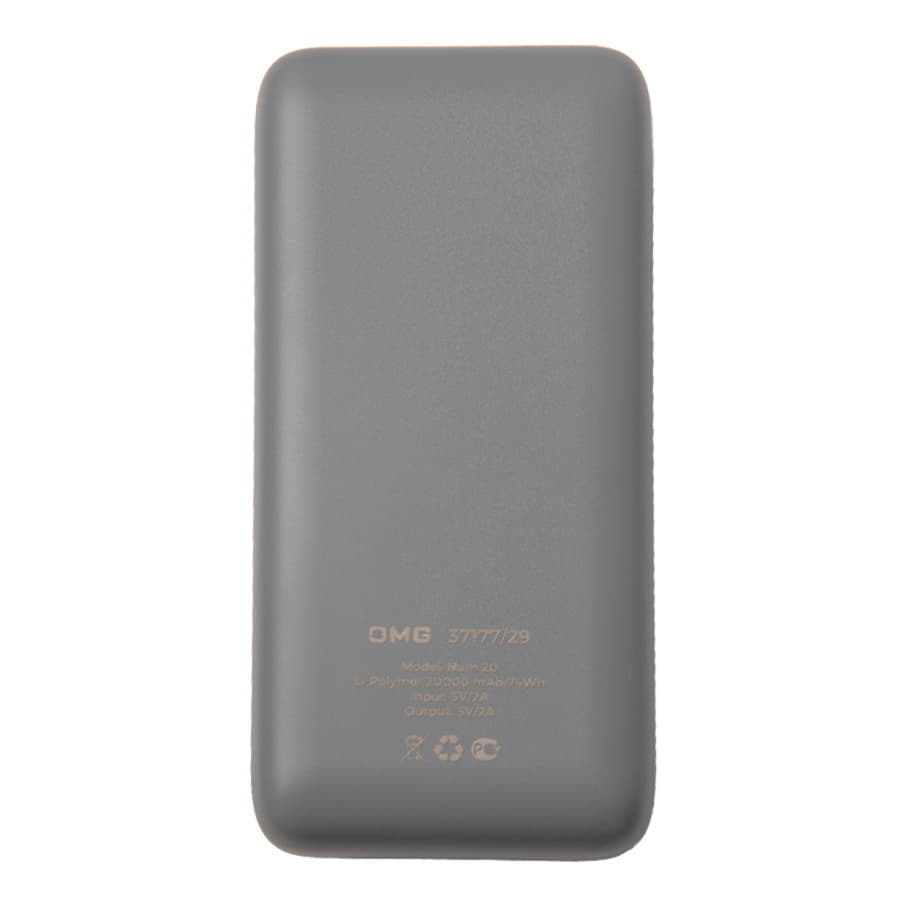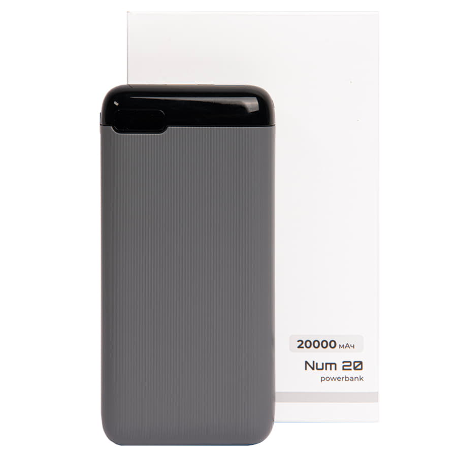 Универсальный аккумулятор Num 20 (20000 мАч), серый, 14,6х7.0х2,75 см