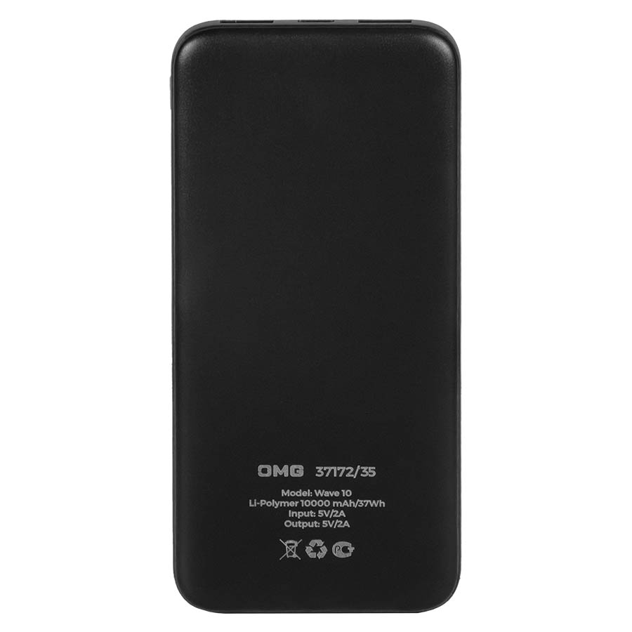 Универсальный аккумулятор Wave 10 (10000 мАч), черный, 14,9х6.7х1,6 см