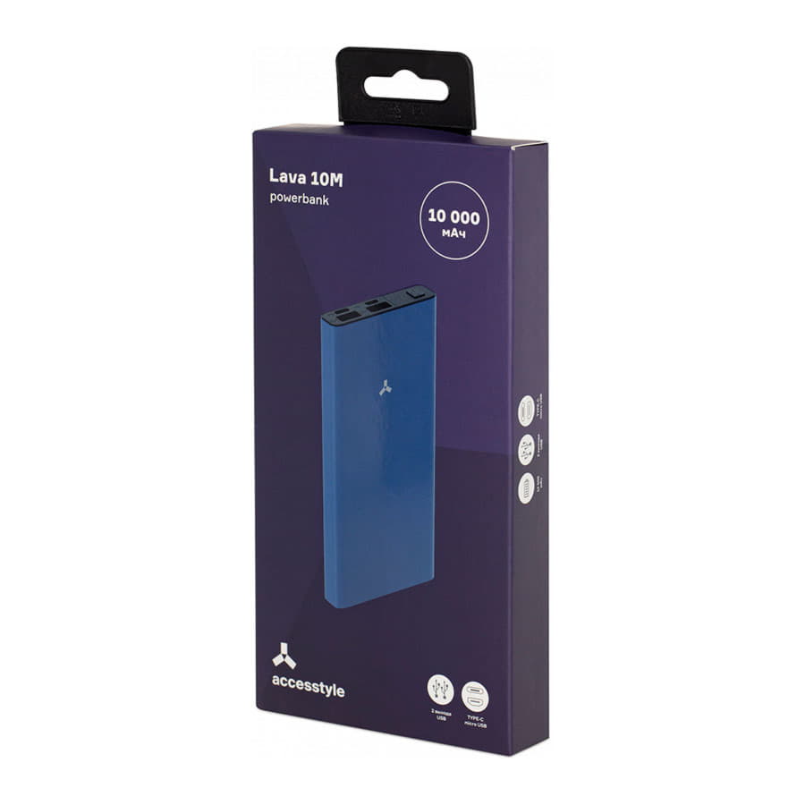 Внешний аккумулятор LAVA 10M, 10000 мАч, металл, синий