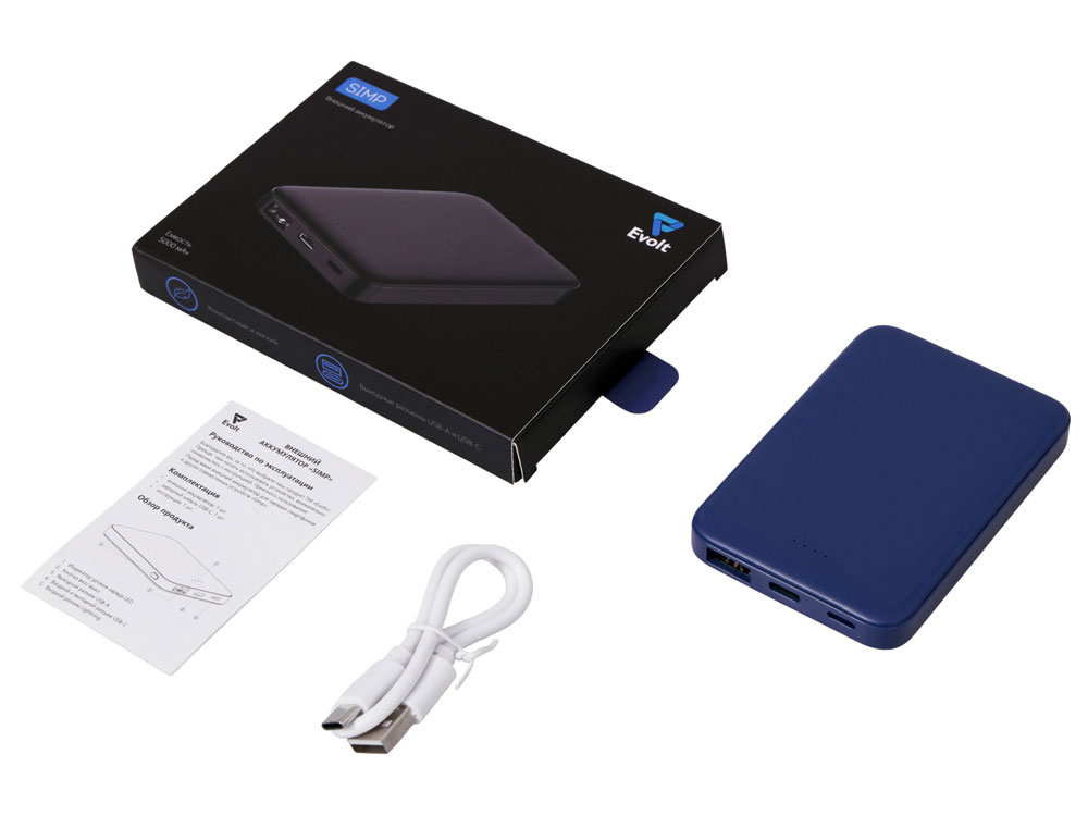 Стильный, тонкий и практичный — этот 5000 мАч повербанк создан для тех, кто ценит мобильность и универсальность. Идеальный корпоративный подарок для клиентов, партнёров и сотрудников, которые всегда в движении! Совместим со всеми смартфонами, имеется двунаправленный USB-C и дополнительное удобство - входной разъем Lightning. Разъемы USB-C и USB-A обеспечивают одновременную зарядку двух устройств. Благодаря мини размерам 91.5*62* мм и лёгкому весу (всего 102 г) легко помещается даже в карман рубашки или кошелёк. Лаконичная матовая поверхность выгодно подчеркнет логотип, а надёжная система защиты гарантирует безопасность при каждой зарядке. Поставляется в продуманной выдвижной упаковке с быстрым и эффектным открытием.