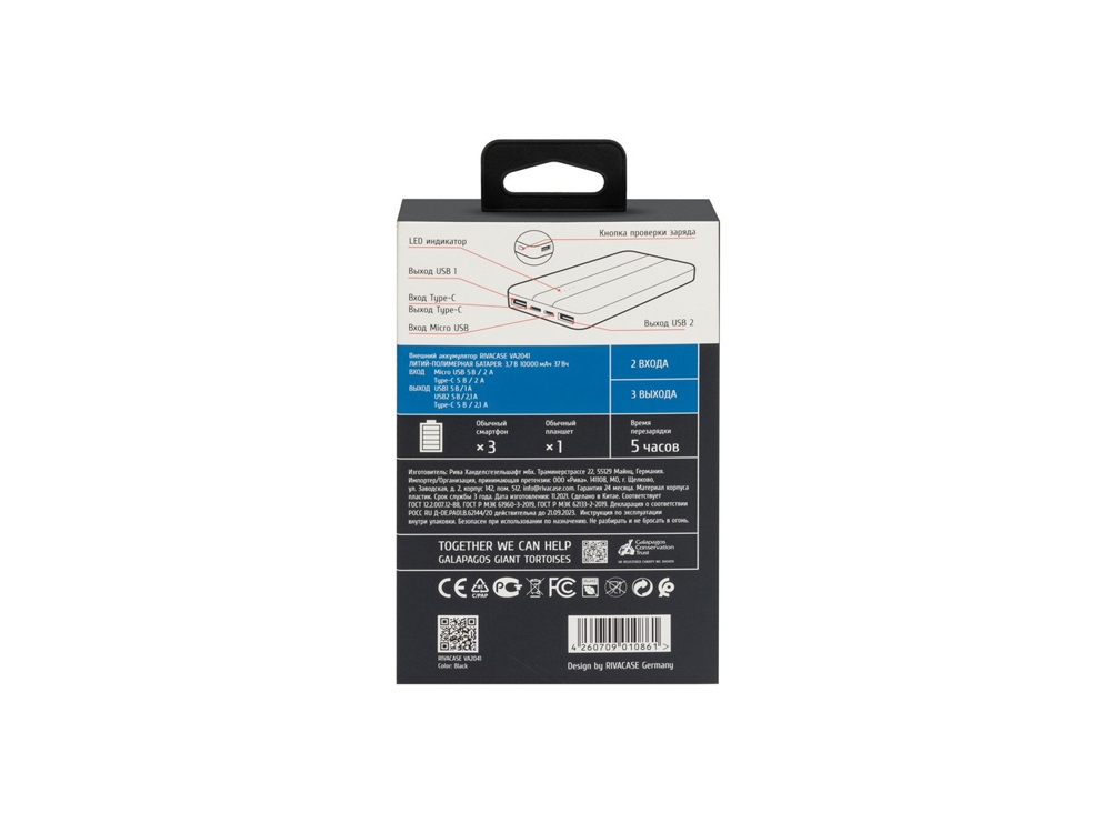 Литий-полимерный внешний аккумулятор емкостью 10000 мАч. Защита от перегрузок, короткого замыкания, чрезмерного заряда и разряда. Автоматическое включение/выключение. Достаточно подключить кабель к разъему мобильного устройства и начнется заряд. LED индикатор показывает уровень заряда (заряжен/в процессе заряда/разряжен). Количество зарядов смартфона до 3 раз (зависит от емкости аккумулятора смартфона). Кабель в комплекте. Заряжает 3 устройства одновременно! TYPE-C выход -
