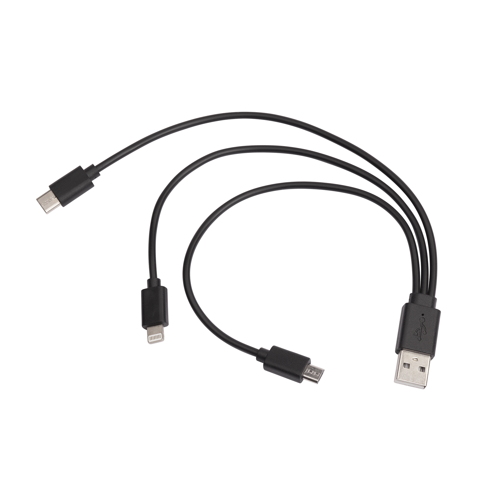 В комплекте кабель 3 в 1 USB / Micro USB / Type-C / Lightning 25 см