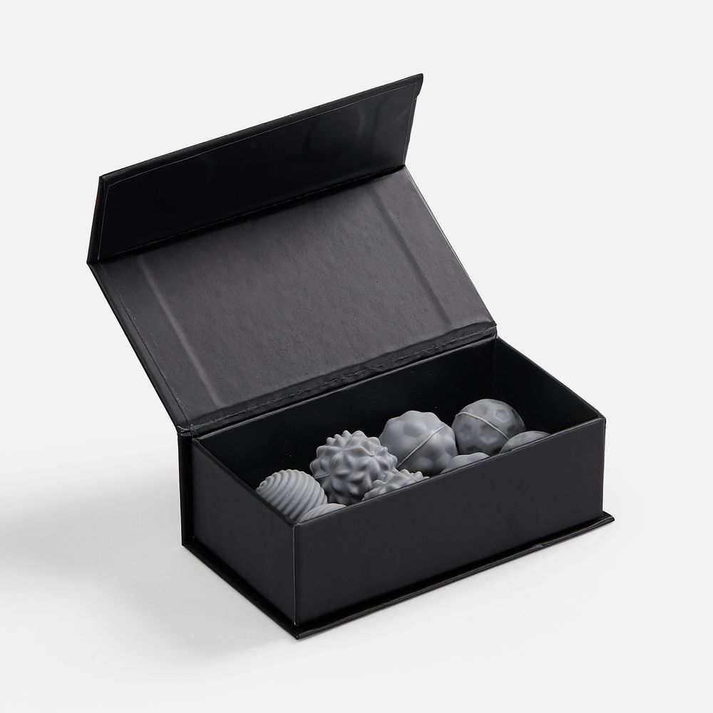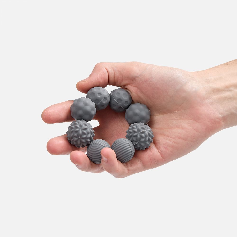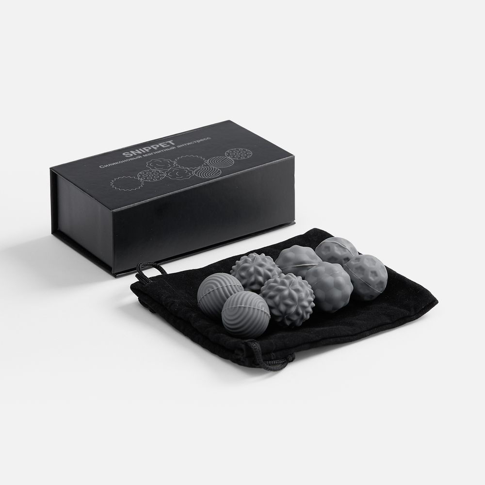 Шарики разной фактуры можно легко использовать как массажные.В комплекте: 8 шариков, мешочек, подарочная коробка на магнитном клипе.