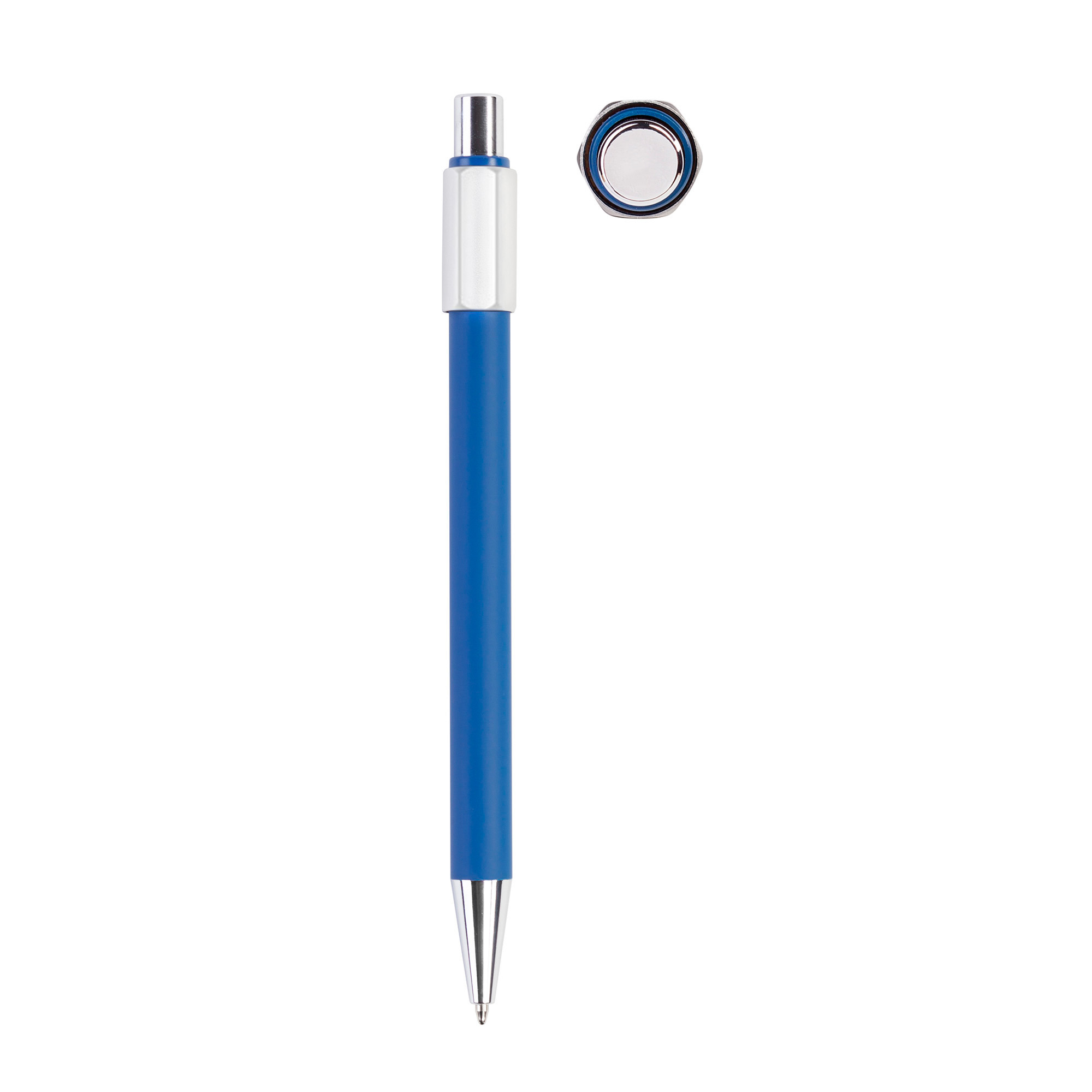 Механизм ручки: нажимной.Корпус ручки разбирается, стержень легко заменить.Стержень с синими чернилами.