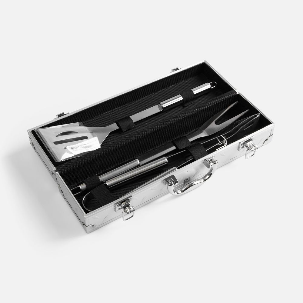 вилка: 35,5х3,5х2 см; лопатка: 35,5х7,5х2 см; щипцы: 35х4,2х6 см; кейс: 37х10х8 см