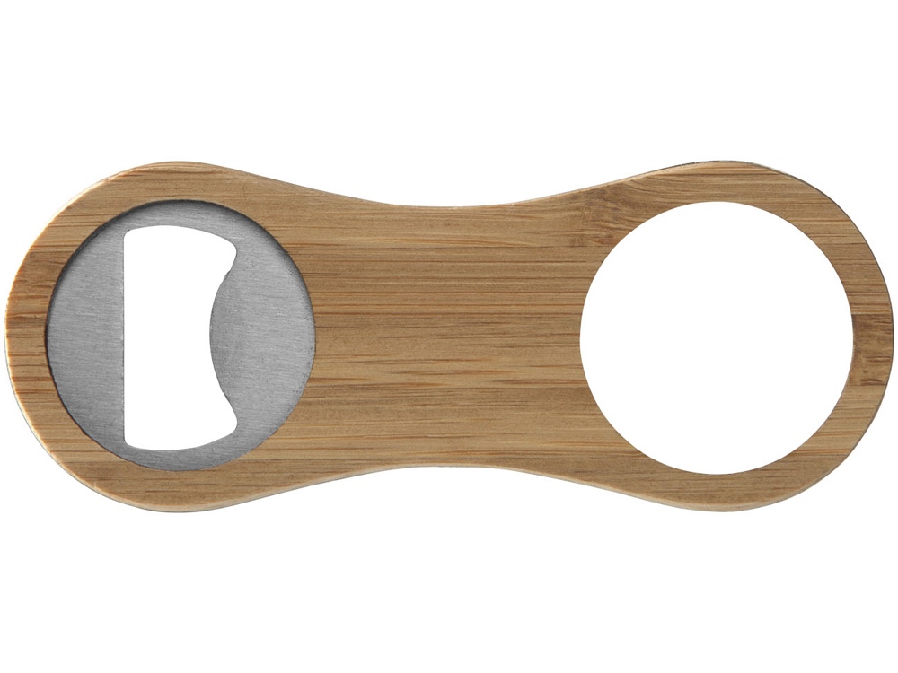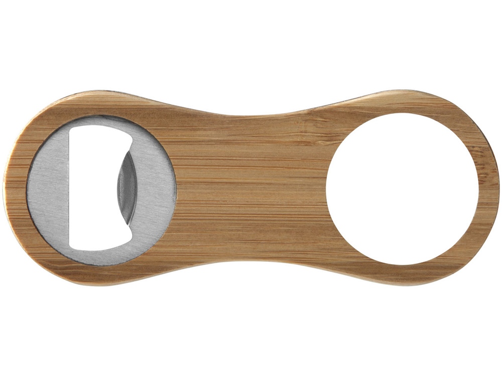 Бамбуковая открывалка для бутылок Barron. Открывалка для бутылок, изготовленная из прочного бамбукового материала с логотипом по середине. Бамбук и нержавеющая сталь. -