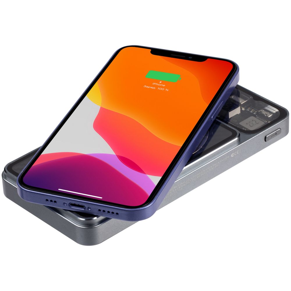 На iPhone 12–16 он примагничивается без каких-либо дополнительных приспособлений, а для iPhone 8–11 и Android-устройств с беспроводной зарядкой рекомендуем приобрести стикер-адаптер Magmate, чтобы максимально использовать это преимущество.- Литий-полимерный аккумулятор