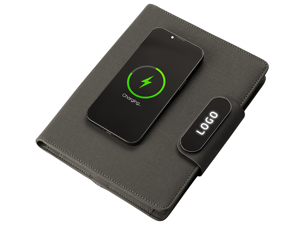 Подарочный набор Twilight: органайзер А5 с беспроводной зарядкой и металлическая шариковая ручка со светящимся логотипом