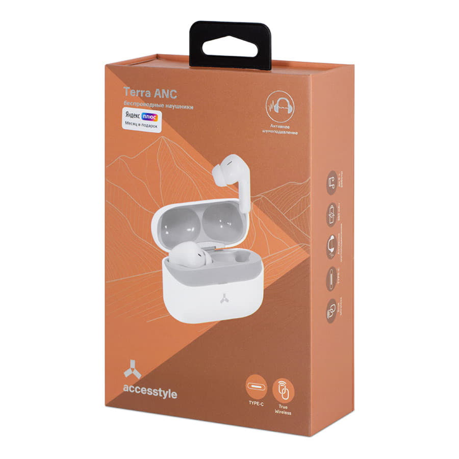Эргономичные наушники с функцией активного шумоподавления и сенсорным управлением Terra ANC — TWS-наушники с активным шумоподавлением. Terra ANC созданы для города. Классический внешний вид, неброские, но насыщенные цвета покрытия на выбор, премиальное качество изготовления. Эти наушники — отличный компаньон топовому смартфону и уместный аксессуар к любому луку. Зарядного кейса хватает полностью зарядить наушники два-три раза. Вместе со временем работы до пяти часов от одного заряда — это до 15 часов воспроизведения вдали от розетки. За великолепную энергоэффективность и детальное плотное звучание отвечает процессор Airoha 1562, Bluetooth 5.2 и 10-миллиметровые мембраны динамиков. Режим шумоподавления добавляет спокойствия миру вокруг вас. Он анализирует внешний шум и отсекает его, помогая вам меньше отвлекаться от музыки, а вашему телефонному собеседнику — хорошо вас слышать. Авиаперелёт? Возьмите Terra ANC с собой. Аудиокнига в метро? Включите шумоподавление и слушайте тихий голос чтеца, не повышая громкости.     Защита от влаги Нет  Время работы 4-5 часов  Входные порты Type-C  Емкость батареи зарядного кейса 380 мАч  Версия Bluetooth 5.2  Сопротивление 32 Ω  Время зарядки кейса Около 1.5 часов  Емкость батареи наушника 40 мАч  Радиус действия 10 м  Размеры динамика Ø 10мм  Размер наушников 32.7 × 24.7 × 7.0мм  Вес наушников 2 х 4,2 г  Частотный диапазон 20 Гц – 20 кГц  Чувствительность динамика 103±3 дБ  Размер зарядного кейса 61.5 × 46.7 × 24мм  Вес зарядного кейса 43.8 г  Время в режиме ожидания 200 часовВремя поставки по заказной программе 5-7 рабочих дней