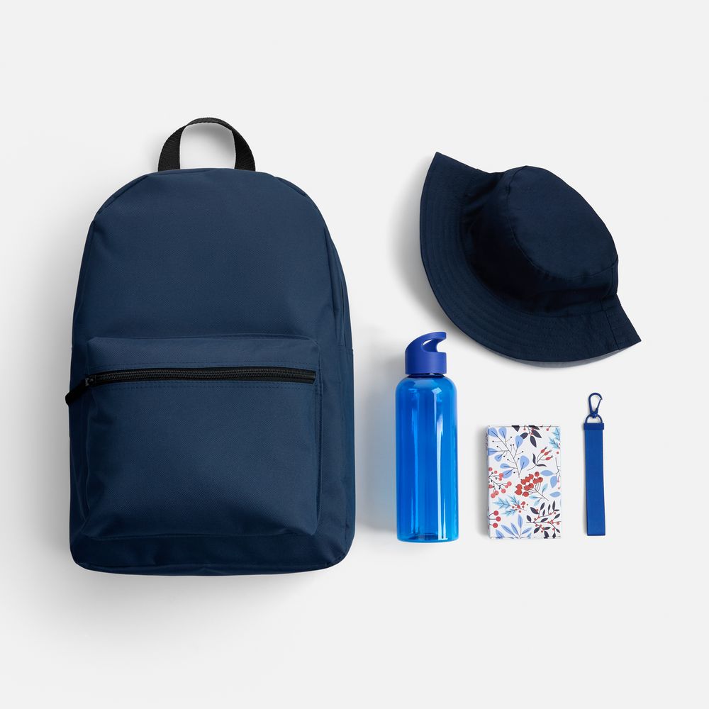 В нем есть все необходимое для комфортной летней прогулки: всегда актуальная в солнечный день панама, стиль которой можно менять буквально на ходу; бутылка для воды оптимального объема, а также сладкий снек для полезного и питательного перекуса. А захватить все с собой, конечно, будет удобно в лаконичном базовом городском рюкзаке, дополнительно оформленном ремувкой — стильным съемным текстильным брелком.
