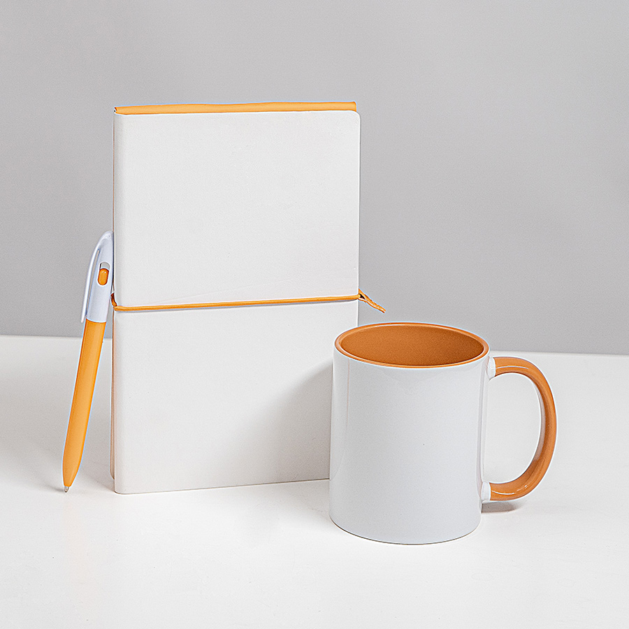 Набор подарочный WHITE VEIL: блокнот, ручка, кружка; белый/оранжевый