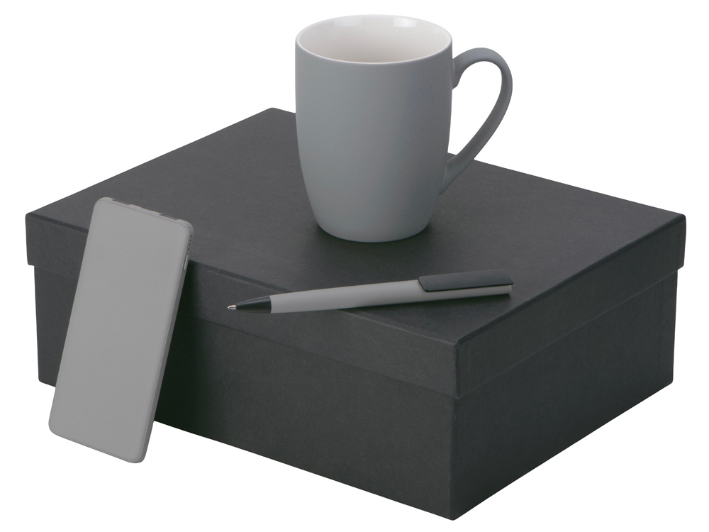 кружка - фарфор с покрытием soft-touch, повербанк - пластик с покрытием soft-touch, ручка - пластик с покрытием soft-touch.