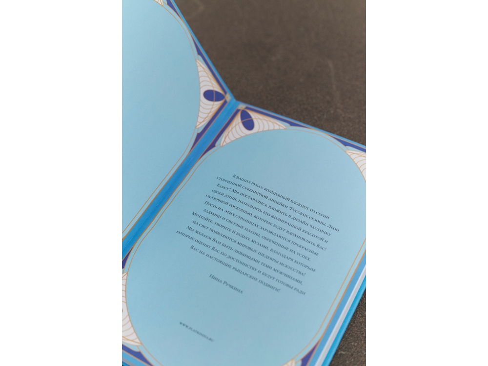 На красочном форзаце расположено обращение Нины Ручкиной, автора дизайна этого блокнота.