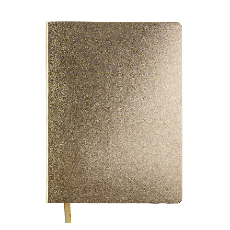 Бизнес-блокнот AURI в золотистом исполнении — сочетание современного делового стиля и премиального дизайна. Мягкий переплёт из нетермоактивного PU‑материала приятен на ощупь и визуально напоминает слиток благородного металла. Золотистый обрез страниц подчеркивает минималистичный образ, превращая рабочий инструмент в статусный аксессуар.Основные характеристики:Формат: 145×205 ммПереплёт: мягкий, из нетермоактивного PU‑материалаОбрез: золотистый, матовыйБлок: 256 страниц, кремовая эвкалиптовая бумага, плотность 70 г кв.мРазлиновка: клеткаУглы: скруглённыеЛяссе: ширина 7 ммДополнительно: перфорация на последних страницахУпаковка: черный сливбокс из переработанного картона+ бумагаВнутренний блок обеспечивает комфортное письмо и приятный визуальный контраст с золотистой обложкой. Упаковка защищает изделие при транспортировке и подчёркивает ответственное отношение к экологии. -