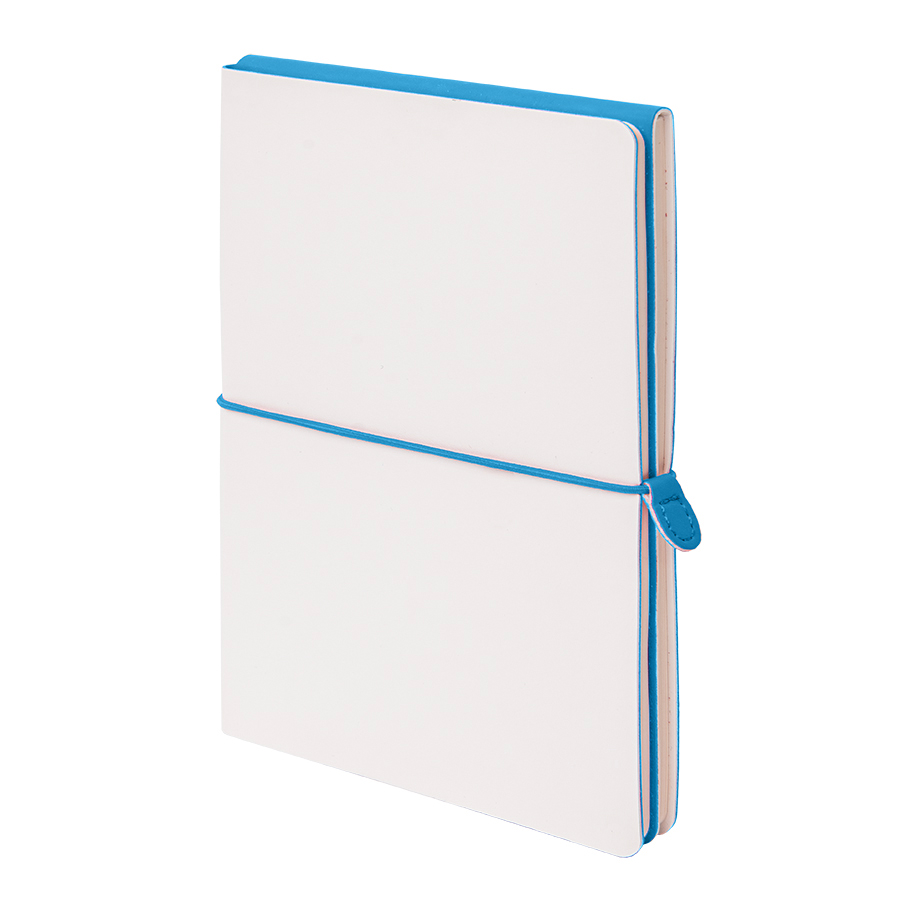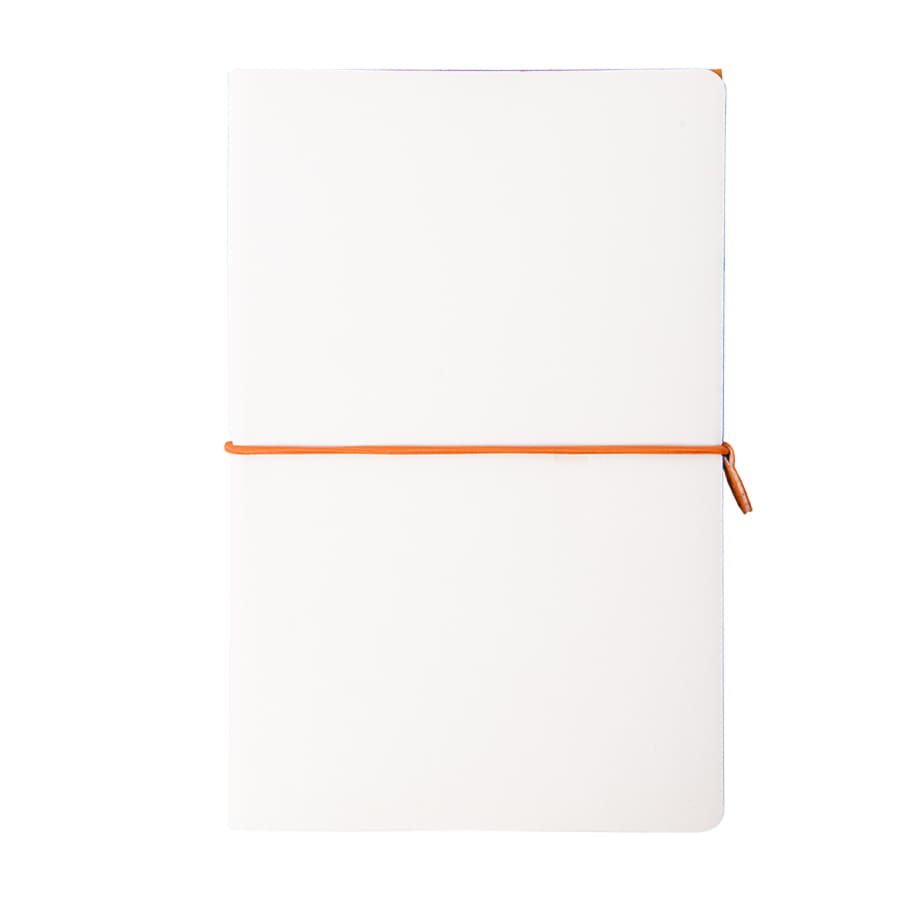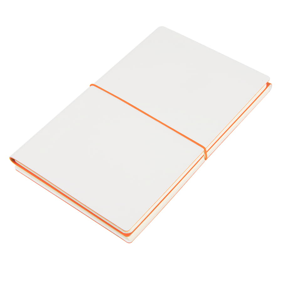 COMBI – Размер блокнота 130*210 мм- два направления открытия блокнота: с лицевой стороны – традиционное горизонтальное раскрытие, с оборотной стороны – вертикальное раскрытие, а-ля блокнот «reporter».- два разных материала обложки: с лицевой стороны – имитирующий настоящую кожу PU Shevret (цвет - белый),с оборотной стороны - яркий PU Silk Plus (цвет, близкий к pantone 1645C). - два разных внутренних блока по 96 страниц соединены под одной обложкой:первый блок - в клетку, второй – нелинованный c перфорацией.Гибкий переплет. Горизонтальная резинка с PU клипом с функцией пенхолдераИдеально скругленные углы блока. Кремовая eco-friendly эвкалиптовая FSC бумага 70 г м2. -