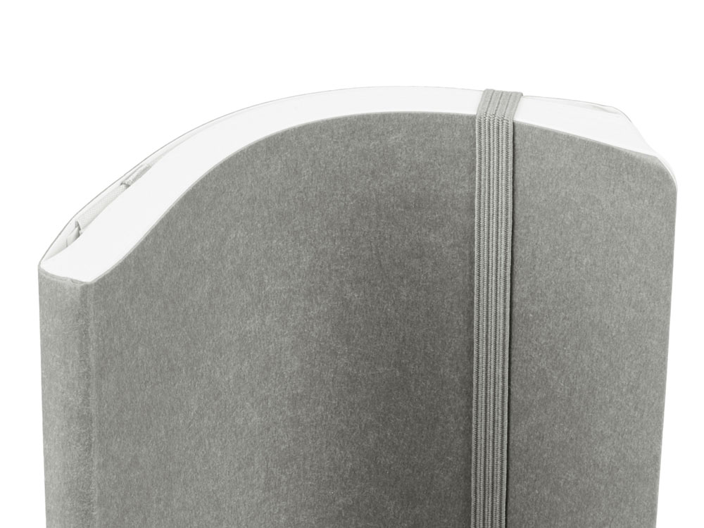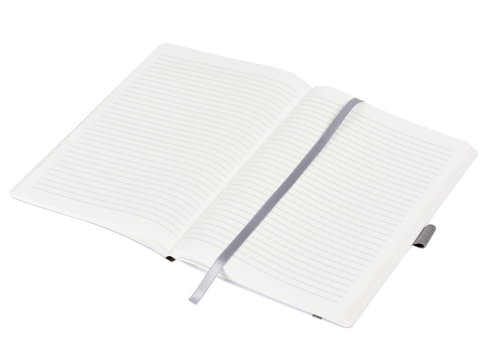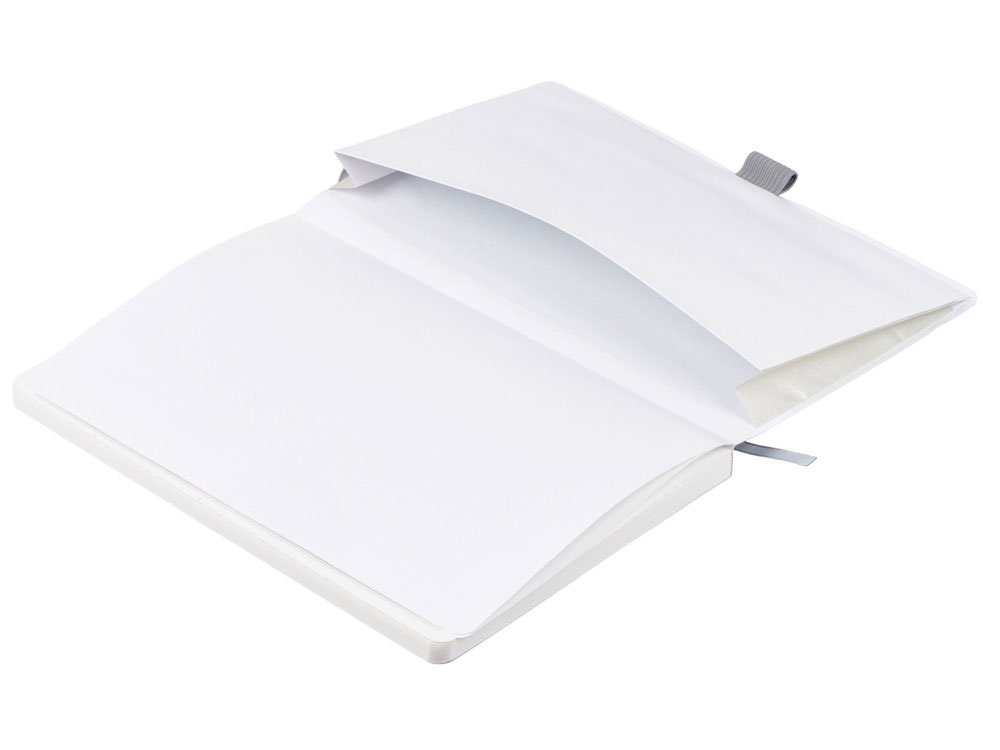 Также блокнот снабжен резинкой и петлей для ручки. Упаковка — конверт из нетканого материала с логотипом.