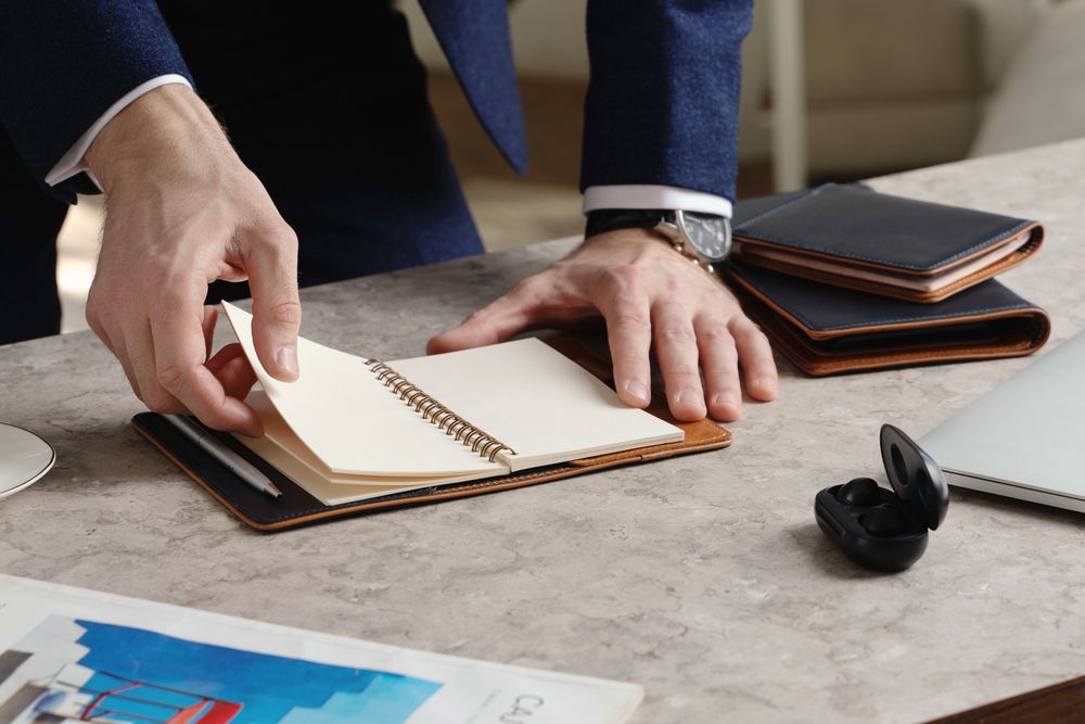 Чтобы передать этот удивительный контраст, для изделий Kalsa Palermo была выбрана гладкая натуральная кожа: глубокого синего цвета снаружи и светло-коричневого оттенка внутри. Оформленные в едином стиле, они легко собираются в подарочные наборы.