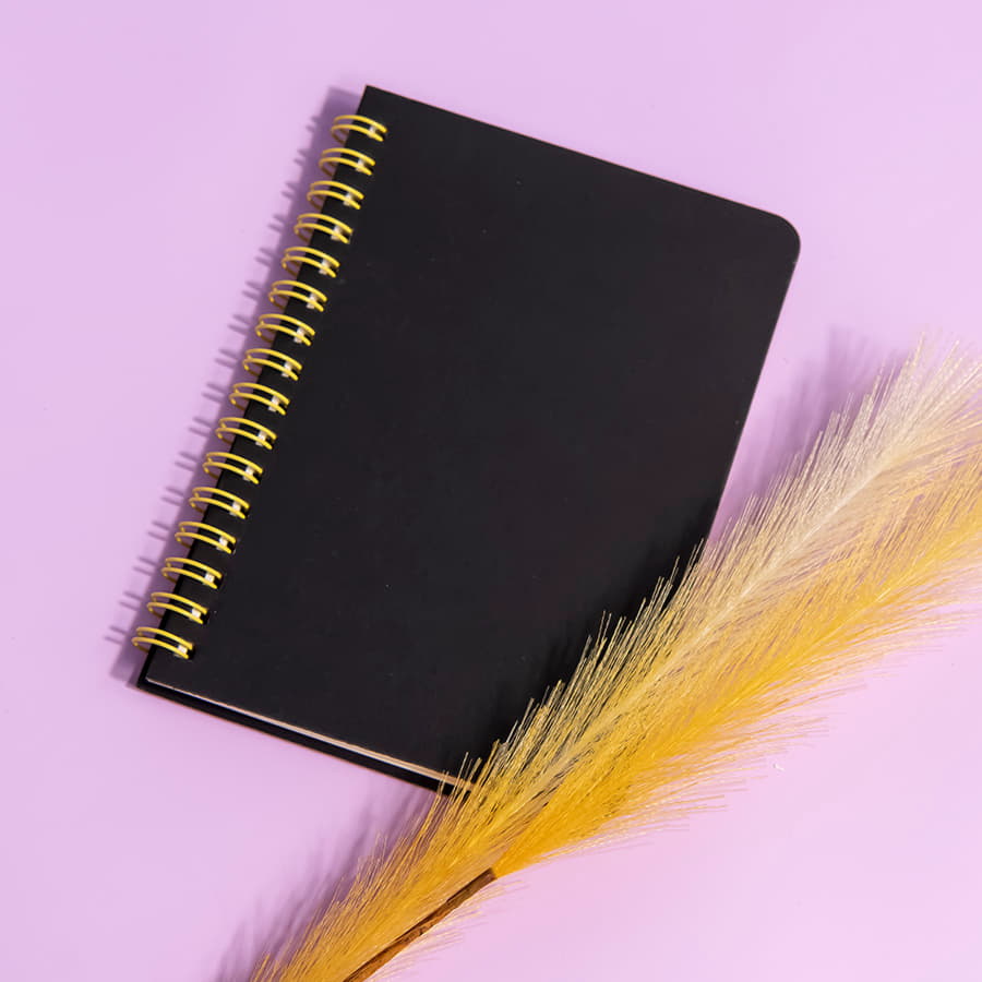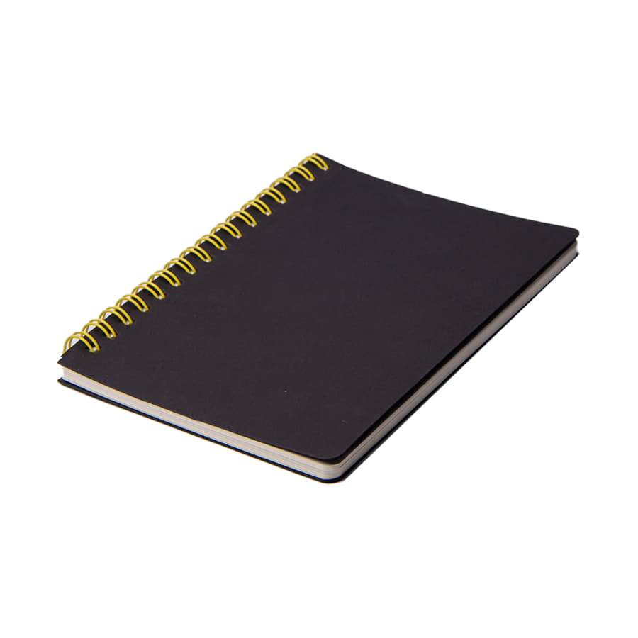 Блокнот на двойной пружине HELIX MINI бренда Y-Note - это универсальное рекламное решение для вашего бизнеса.Обложки блокнотов HELIX MINI изготовлены из черного высококачественного картона, плотностью 400 + 400 г. На оборотной стороне обложки тиснение бренда.Двойная пружина жёлтого цвета будет идеально сочетаться с вашим фирменным логотипом.Блок из 50 листов плотностью 70 г в клетку. -