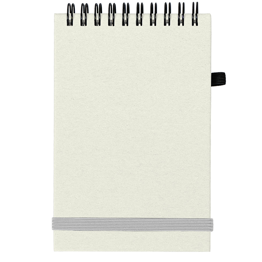 Блокнот на спирали MEMO, размер 95*145 мм, обложка твердая, переработанное натуральное волокно, 60 листов из переработанной бумаги, 80 г м2. Резинка-пенхолдер и резинка для фиксации.Ручка в комплект не входит -