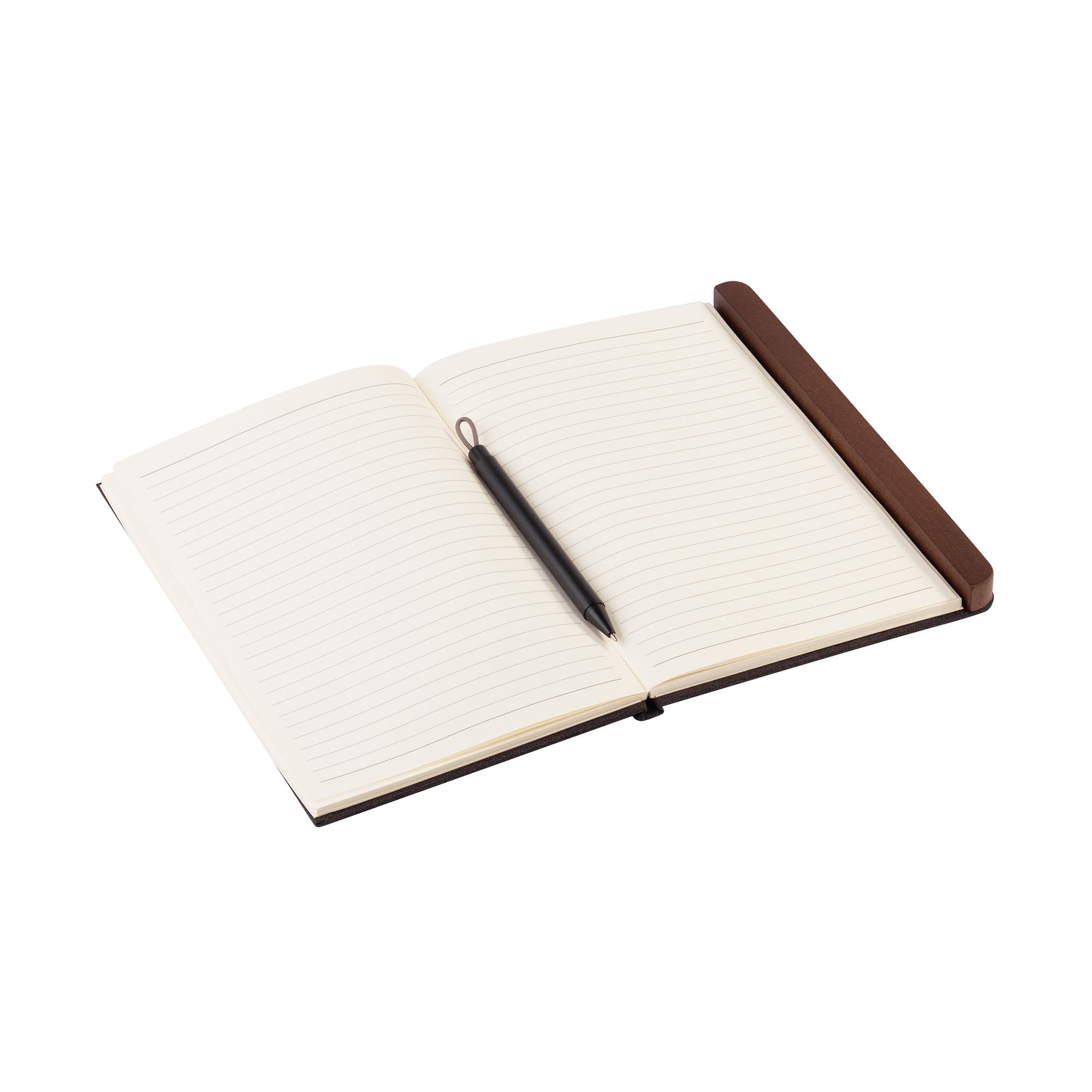 Невероятно оригинальная конструкция набора 2 в 1 - металлическая ручка скрыта и плотно держится в магнитном пенале из натурального дерева, закрепленном на обложке блокнота. При этом ручку легко извлечь, просто потянув за петельку на нажимной кнопке.