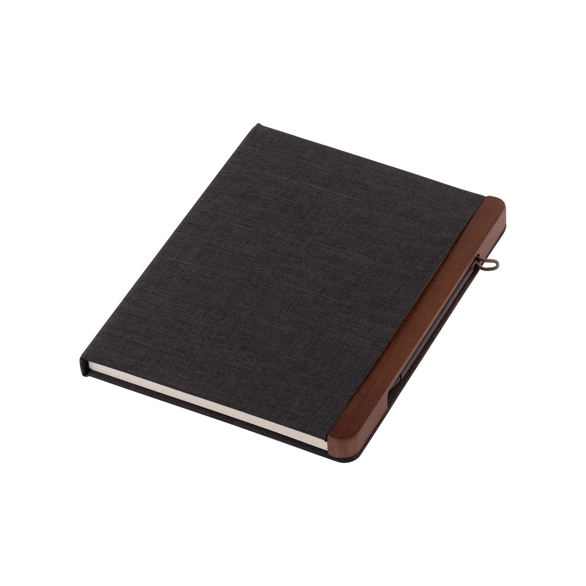 В блокноте 160 страниц в линейку кремовой бумаги плотностью 80 г/м2. Материал текстильной обложки изготовлен из переработанного (RPET) пластика. Ручка с синей пастой, стержень легко заменить.