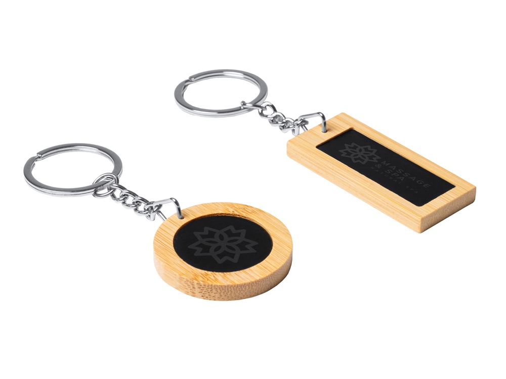 Круглый брелок из бамбука и стали. Идеально подходит для лазерной гравировки. -